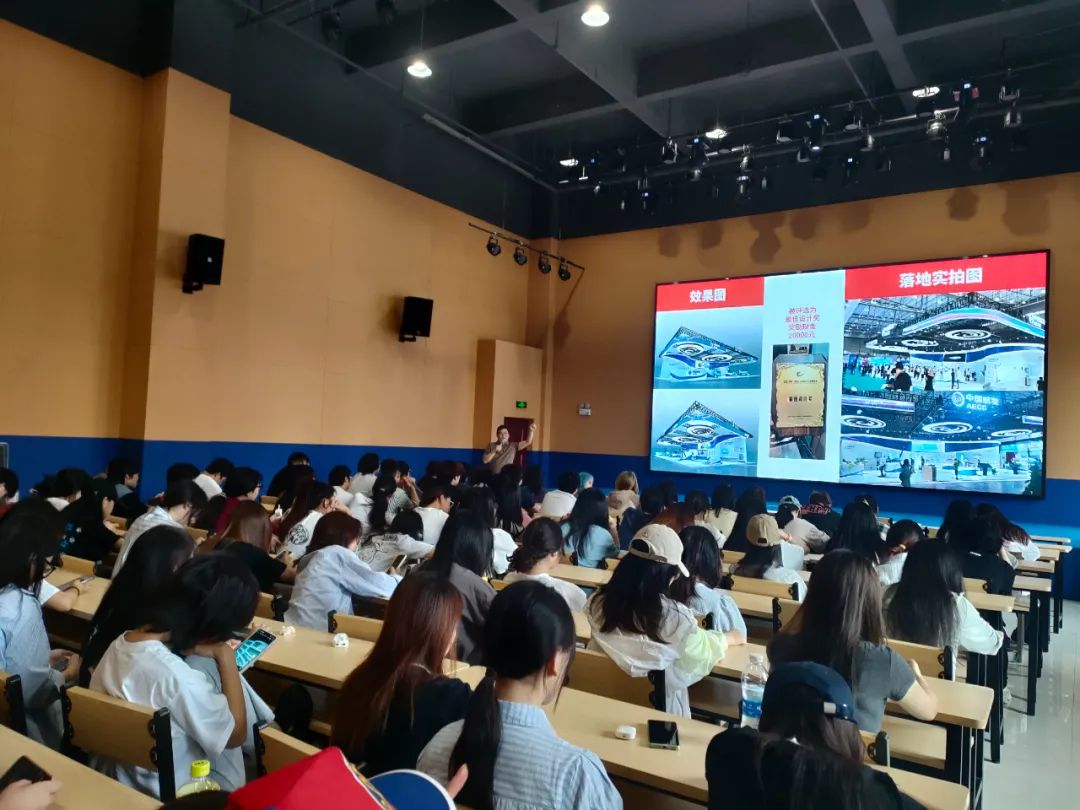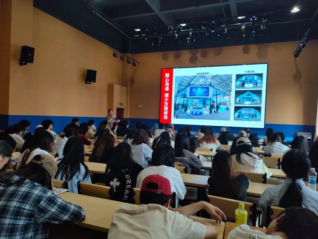 緊接著,是會(huì)展設(shè)計(jì)的經(jīng)驗(yàn)和案例分享,用他豐富的實(shí)戰(zhàn)經(jīng)驗(yàn)和一個(gè)個(gè)生動(dòng)的案例,將我們帶入了一個(gè)又一個(gè)精彩絕倫的會(huì)展世界。從項(xiàng)目策劃到設(shè)計(jì)執(zhí)行,從創(chuàng)意構(gòu)思到細(xì)節(jié)打磨,每一個(gè)項(xiàng)目背后都凝聚著的專(zhuān)業(yè)素養(yǎng)和對(duì)品質(zhì)的堅(jiān)持。魯老師的分享,讓在場(chǎng)的每一位同學(xué)都學(xué)習(xí)到了,專(zhuān)業(yè)的會(huì)展設(shè)計(jì)師,應(yīng)該具備怎樣的職場(chǎng)素養(yǎng)。