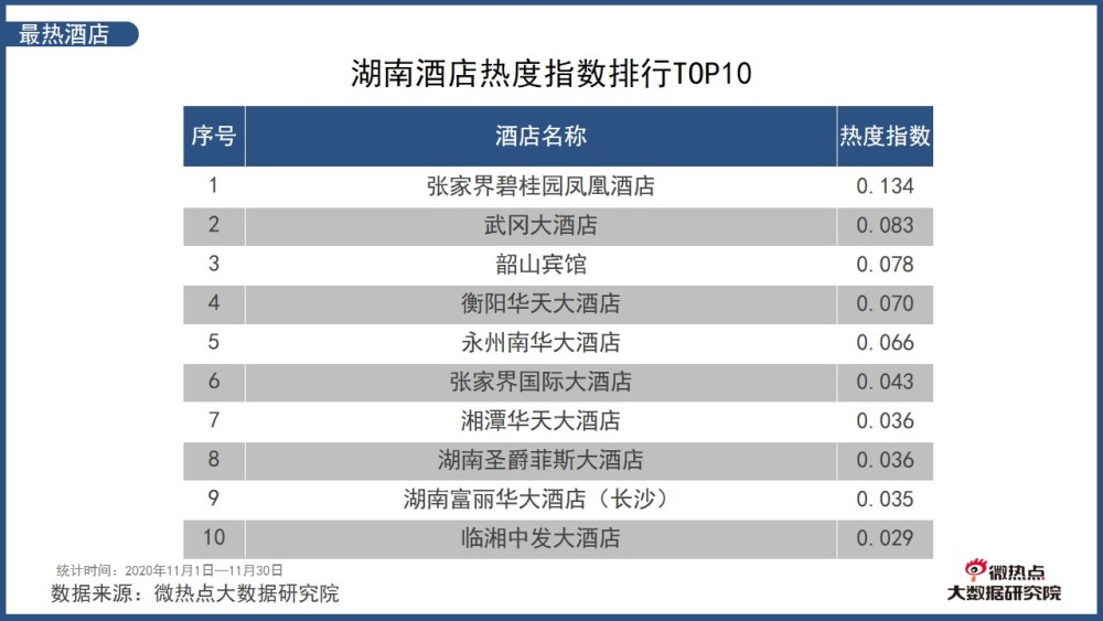 湖南11月酒店熱度指數(shù)排行TOP1