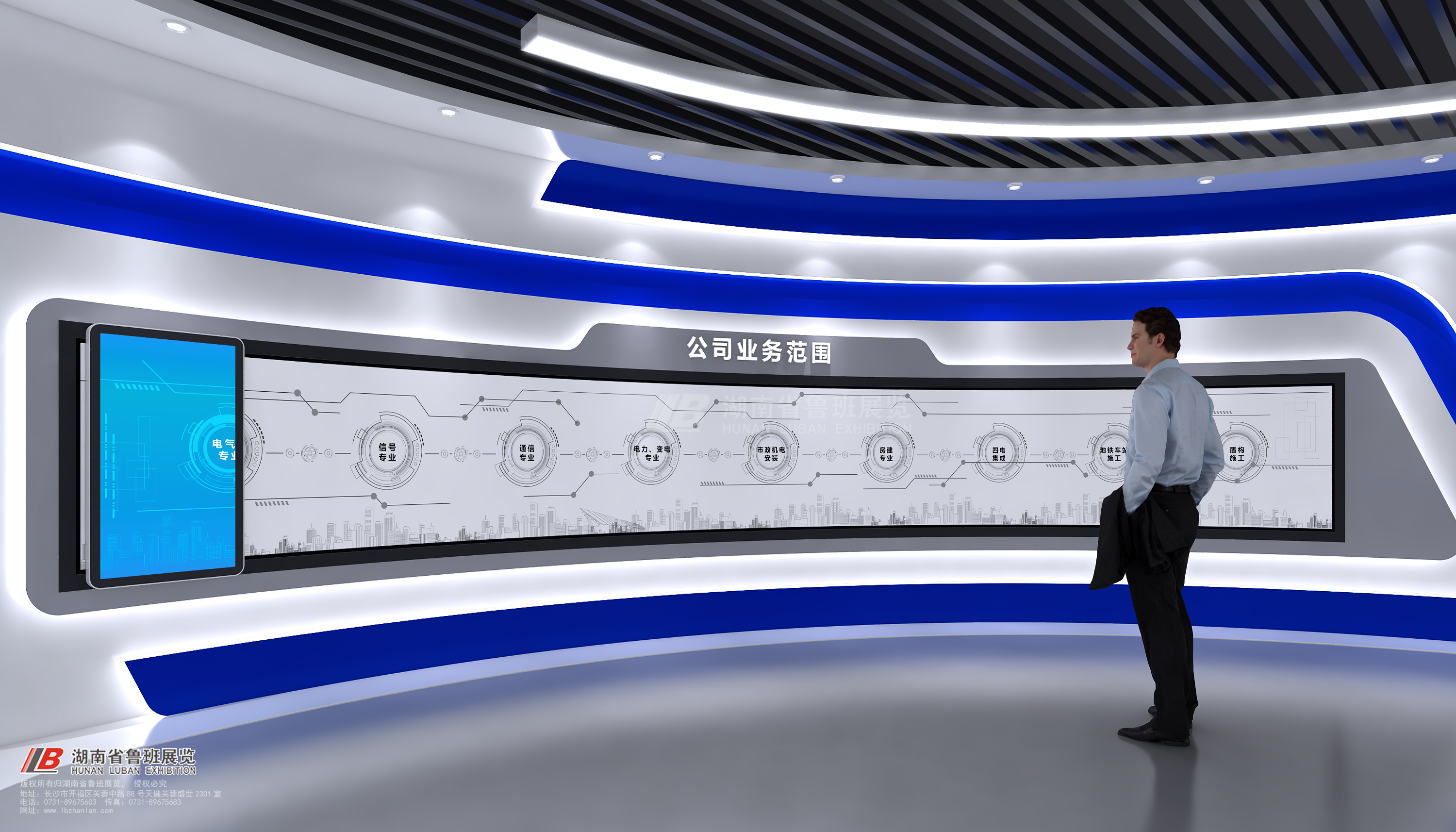 4、展廳內(nèi)的視頻宣傳設(shè)備,在展廳搭建中,宣傳設(shè)備是一樣不能少的,包含燈箱,只能設(shè)備,VR,等等這些都是展廳設(shè)計當下熱門設(shè)備。